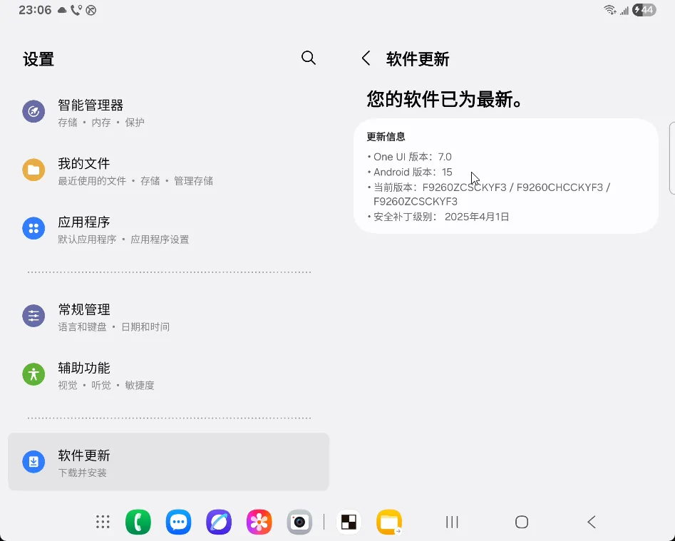 更新完成后,手机的系统版本是2025/6/29发布的大陆版F9260ZCSCKYF3
