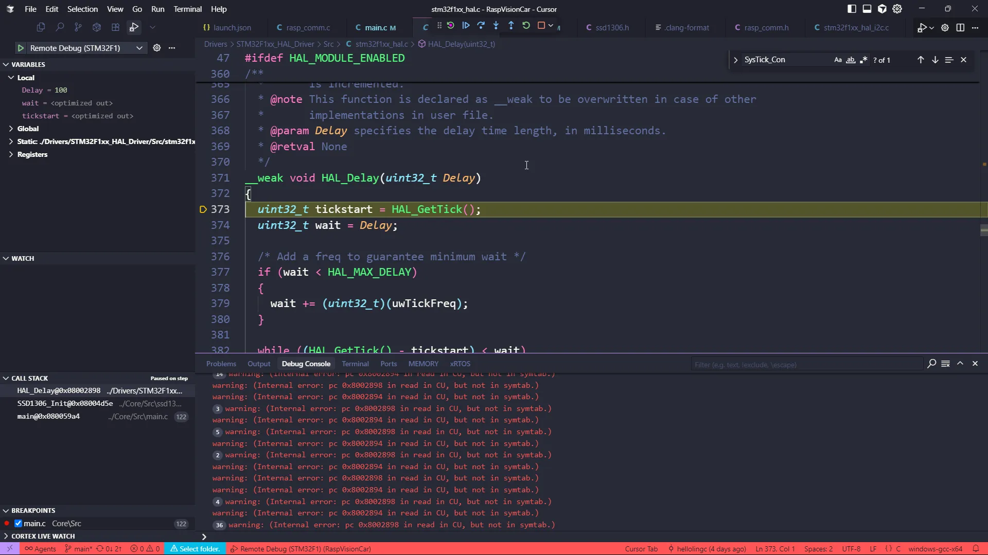 STM32 如何解决调试时卡在SysTick November 13, 2025 Programming Embeded HAL_Delay以及HAL_GetTick void SysTick_Handler(void) { HAL_IncTick(); } 可以使用 DWT 延时替代 SysTick 或者使用TIM